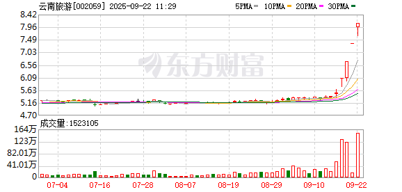 数据宝统计,截至10:17,云南旅游成交额10.23亿元,创2022年4月14日以来新高。最新股价上涨8.44%,换手率13.02%。上一交易日该股全天成交额为1.31亿元。